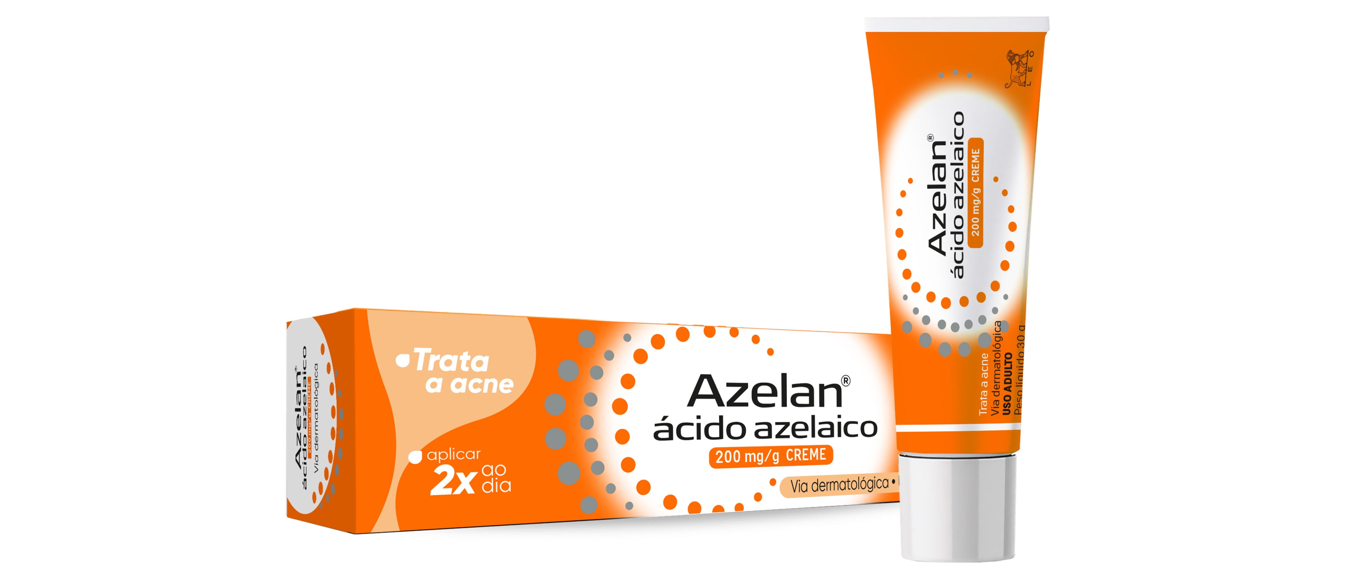 Azelan® é um tratamento tópico com ação multifuncional, sendo eficaz no tratamento da acne em pacientes adultos. Seu princípio ativo, o ácido azelaico, reduz a inflamação e combate as bactérias C .acnes, que possuem papel essencial no desenvolvimento da acne. Também reduz a aspereza e o espessamento das células da pele, que obstruem os poros produzindo cravos pretos e brancos. Azelan® promove ainda a inibição na produção de melanina envolvida na Hiperpigmentação Pós-Inflamatória da acne.1-3